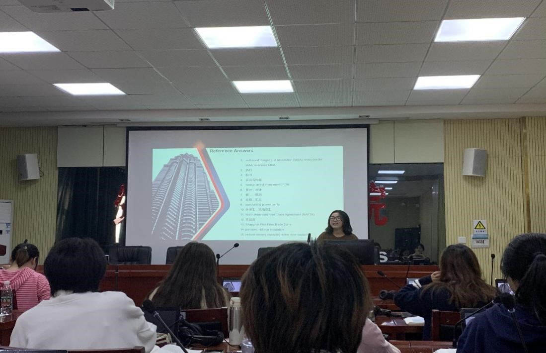 姚老师的公开课以《口译教程》第六单元为授课内容,授课对象为英语2001、2002班的员工。本次公开课主要讲授数字口译(figure interpreting)。课程热身环节,姚老师通过现场问答+分享自身口译经历的方式引入数字口译话题,引起员工对数字口译的兴趣;随后她带领员工从口译特点、数字信息密集、汉英计数差异等方面分析了数字口译的难点,以及如何运用即时转换及二次转换法处理数字;最后,姚老师准备了数字口译及含有数字信息的口译两类练习,帮助员工熟练掌握数字双语转换的同时,也锻炼了员工的口译实战能力,实现了教学与实践的结合。课后,听课教师针对公开课情况进行了一次集体研讨。老师们充分肯定了姚老师的教学水平和素养,同时针对如何优化教学方法、丰富教学手段和提升教学效果提出了非常好的建议和意见。