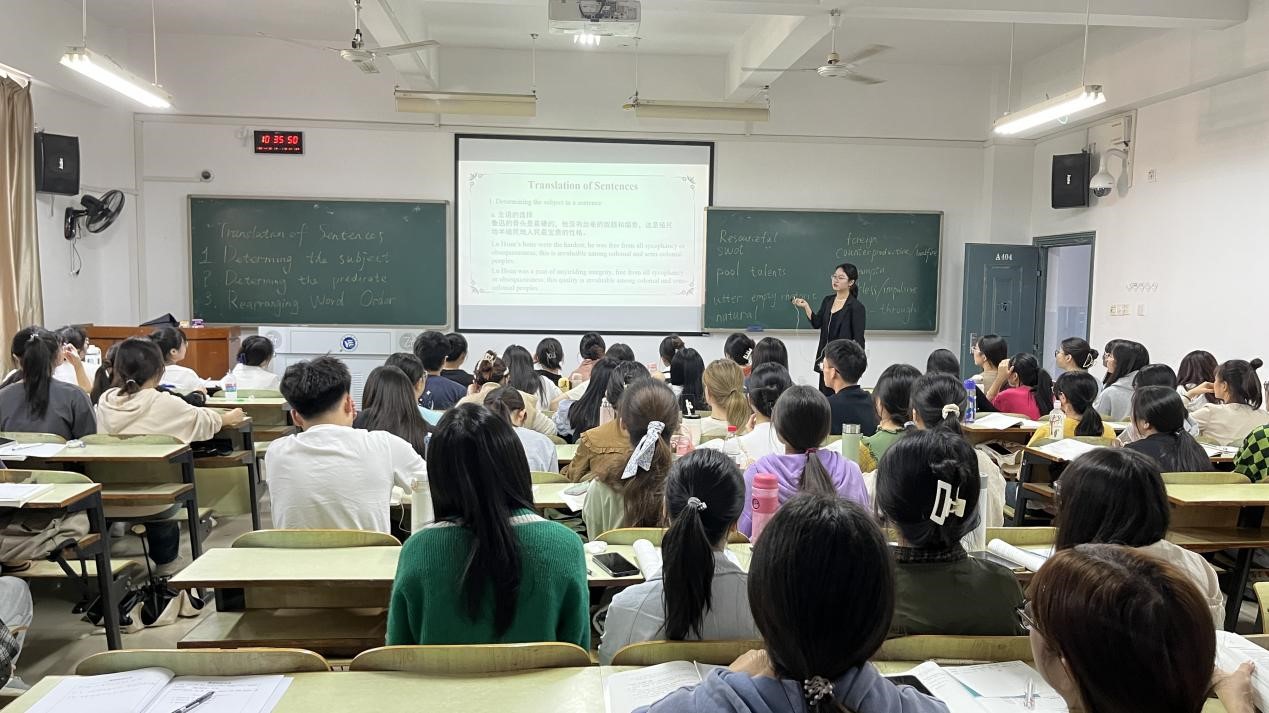 20221110日上午第3节课,商务英语教研室王行舟老师在主校区A404教室成功举行了教学公开课,商务英语教研室杨永和教授及商务英语教研室全体老师到场进行了观摩学习和交流。