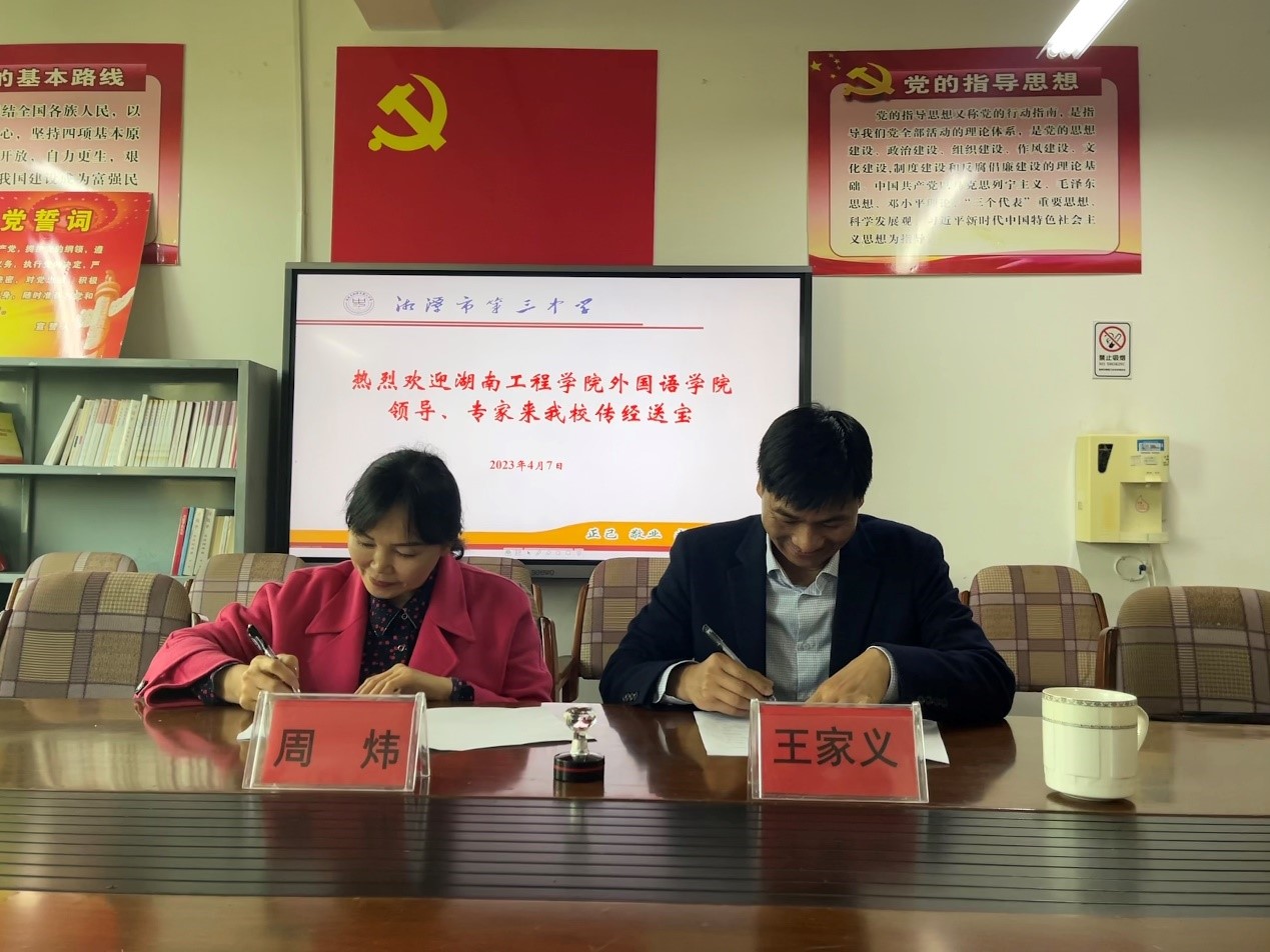 为英语专业教学方向学子开拓新的优质教学实习基地,4月7日,工训中心书记肖江淑陪同beats365官方网站经理王家义、英语系苏静、刘欣一行来到湘潭市第三中学就两校建立英语教学实习基地事宜进行交流洽谈。湘潭市第三中学董事长周炜、副董事长陈自力等教师代表出席了交流会。