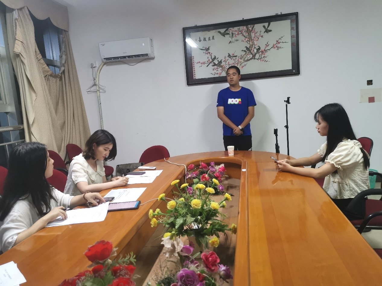 本轮选拔赛设立F309(选手集合)、F310(选手备赛)、F312(选拔评分)三处场地,分别设有引导人员与计时人员。选拔赛以即兴演讲为主,按应用技术公司组、本部英专组、本部非英专组顺序依次进行。选手根据抽签顺序入场,抽取话题,在3分钟备赛时间结束后进行2分钟左右的即兴演讲;评委依据选手表现打分,最后选出本轮比赛的优胜者。在本轮比赛中,来自不同专业的12名选手从激烈的角逐中脱颖而出,以标准的发音、流利的表达与稳健的台风赢得了评委老师的一致认可,本次暑期集训队选拔赛顺利结束。