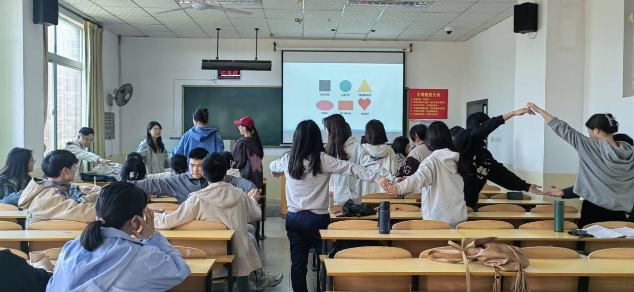 活动中来自各个专业的同学们通过自我介绍以及自由组队创作形状等小游戏相互交友,这些游戏使大家迅速进入轻松愉快的活动状态;在接下来的主题教学中,大家就中英文土味情话、爱情相关话题进行了小组PK,同学们兴趣浓厚,纷纷上台踊跃发言;最后的表演环节中,同学们大胆尝试,即兴表演,赢得了师生们阵阵掌声。