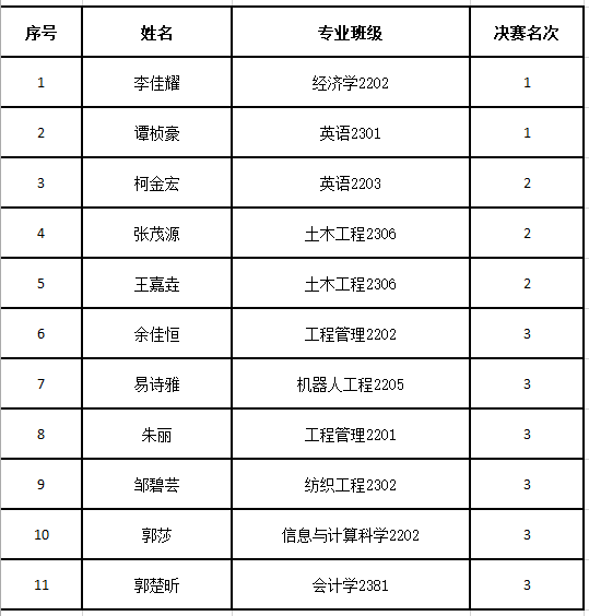 根据《“理解当代中国”beats365官方网站老员工外语能力大赛通知》精神,综合能力组经复赛、决赛两个环节,拟定李佳耀、谭桢豪获一等奖,柯金宏、张茂源、王嘉垚获二等奖,余佳恒、易诗雅、朱丽、邹碧芸、郭莎、郭楚昕获三等奖。现将结果予以公示。