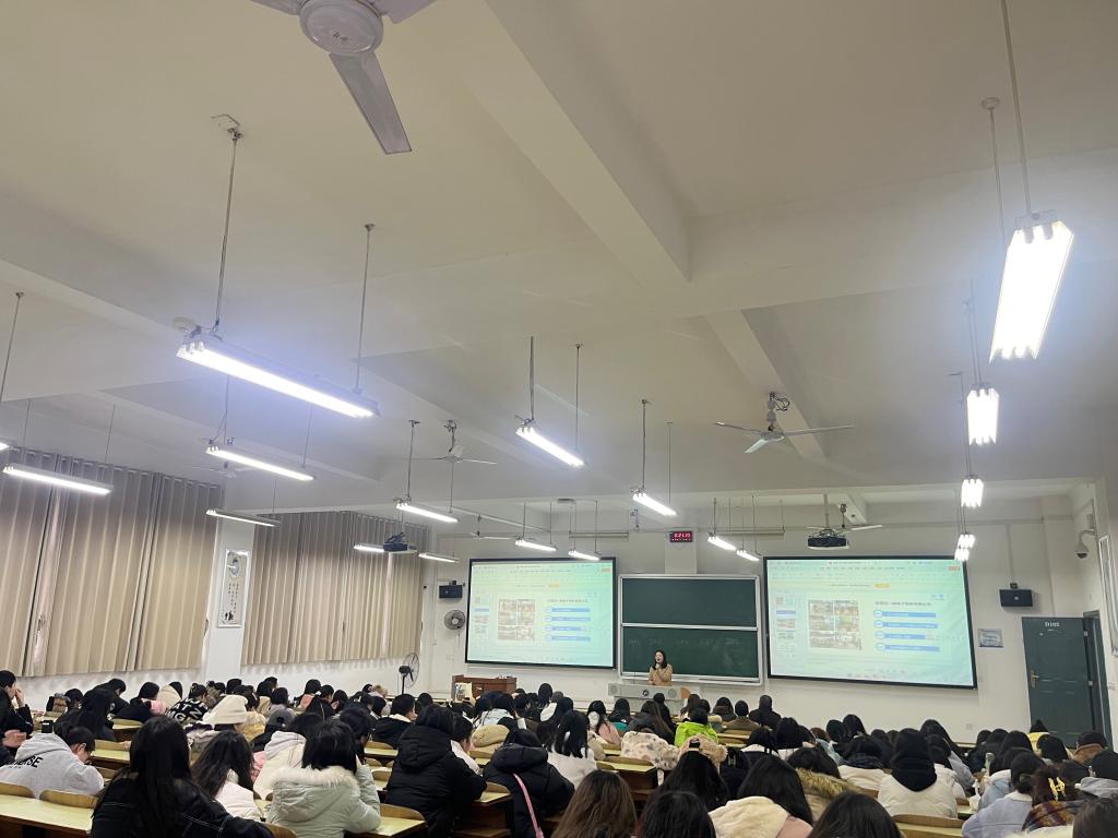 黄鑫首先对与会嘉宾和师生表示热烈欢迎,并向即将踏上毕业征程的2025届本科生表达了期许和鼓励。她指出,毕业论文和毕业实习是大学阶段的重要环节,是理论与实践结合的体现,也是员工从校园迈向社会的重要桥梁。随后,黄鑫就论文选题、写作计划以及实习期间的注意事项进行了详细解读,并强调了时间规划与学术规范的重要性,希望同学们严谨认真地对待论文与实习任务。