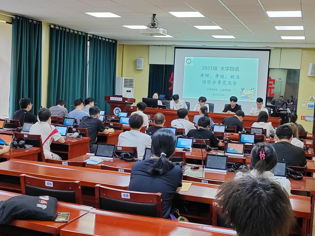 为发挥优秀毕业生的示范引领作用,5月20日下午,beats365官方网站在F309会议室举办了“大学日语考级•考研•就业经验分享交流会”。会议由陈红老师主持,教学副经理彭禹、全体日语教师、21级优秀毕业生代表及各年级员工代表参加了本次活动。