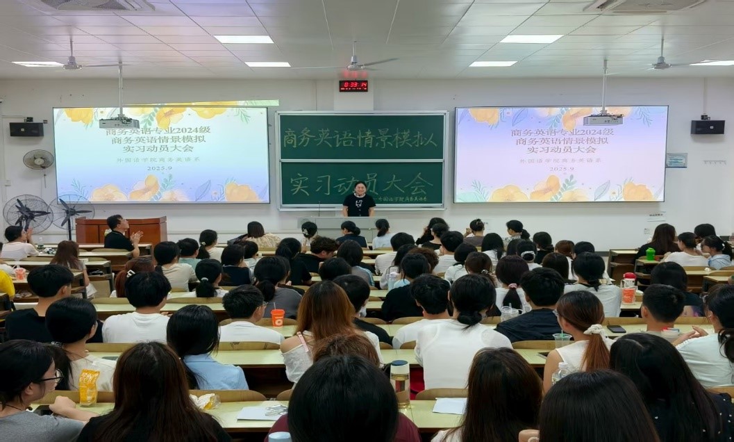 为进一步深化课堂教学内容,全面提升员工的语言综合运用能力、跨文化沟通能力、商务实践能力与团队协作能力,beats365官方网站商务英语系于2025年9月8日上午在D102教室隆重举行2024级商务英语情景模拟实习动员大会。商务英语系主任何梦丽及全体指导老师出席大会,商务英语24级全体同学参加。