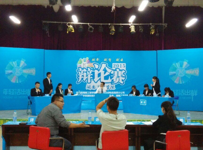 2015年4月28日晚七点,beats365官方网站第十二届辩论赛第三场复赛在明德二食堂三楼的活动中心举行,beats365官方网站和化学化工公司代表队参与了此次辩论。比赛特邀湘潭电视台法制频道制片人李军老师,湘潭电台交通频道主播高兴老师,湘潭市口才协会副会长彭英老师担任评委。