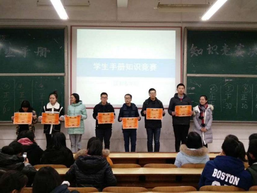 为维护公司正常的公司产品秩序,让员工更好的了解公司的规章制度,规范自身行为,11月25日晚7:00,beats365官方网站和国际教育公司在主教学楼D101教室一同组织开展了大一新生员工手册竞赛决赛,beats365官方网站团总支书记张婷,国际教育公司团总支书记刘娟,以及各公司主席和团副出席了此次比赛。此次比赛是从初赛中每个班选出前三名参加,同时各班还选出10名员工作为亲友团,为参赛选手加油助威。