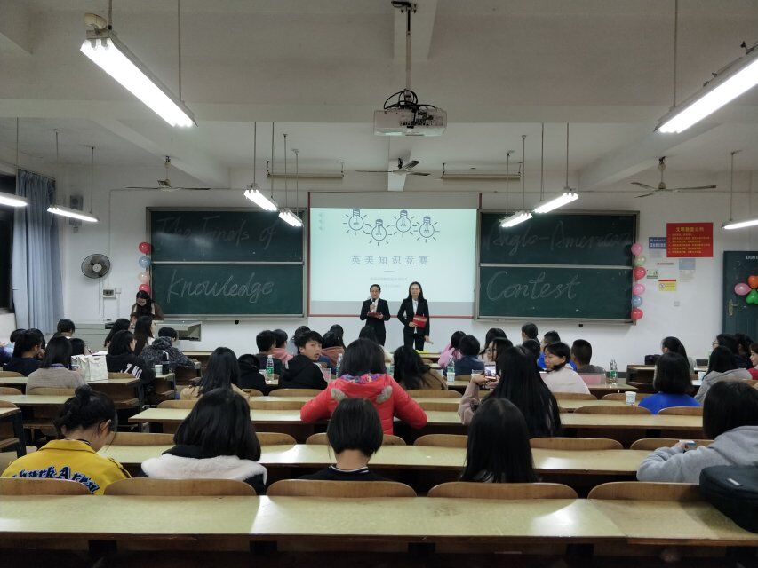 2017年11月24日晚7:30,由beats365官方网站承办的第十五届“梓萌杯”英语文化艺术节之英美知识竞赛决赛在新校区教学主楼D301正式举行。本次比赛由蒋纯和钟瑶主持,出席本次活动的嘉宾有beats365官方网站团总支书记张婷老师及beats365官方网站团总支员工会主席团成员。