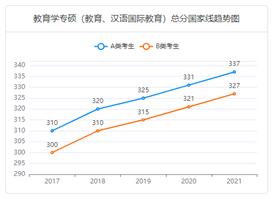 广西师范大学的复试分数线是国家线,今年327分,进复试是不难的。近5年的教育专硕国家线大家可以看下,分数是一直在涨的。