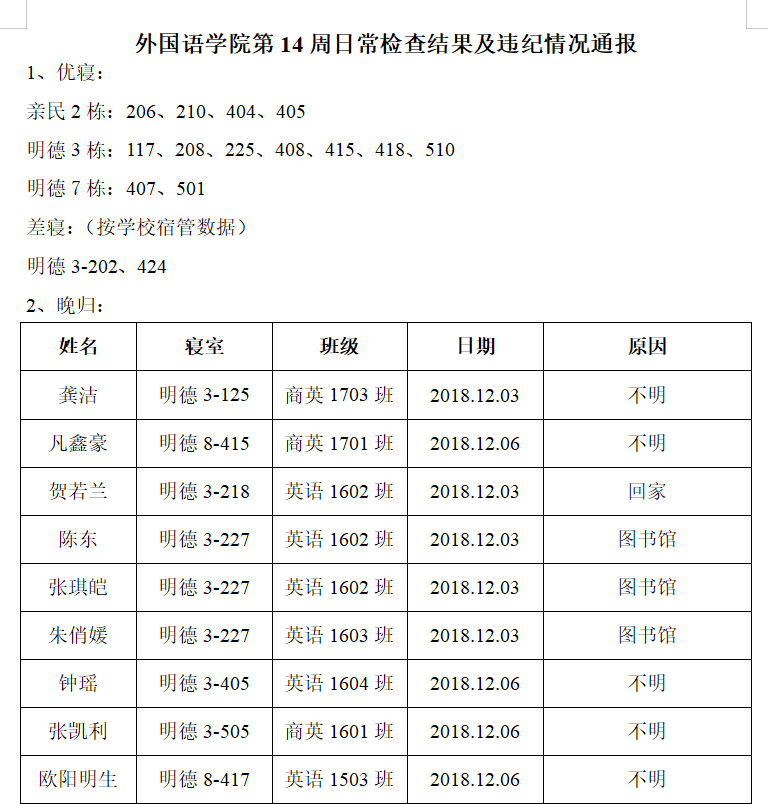 beats365官方网站第15周日常检查结果及违纪情况通报