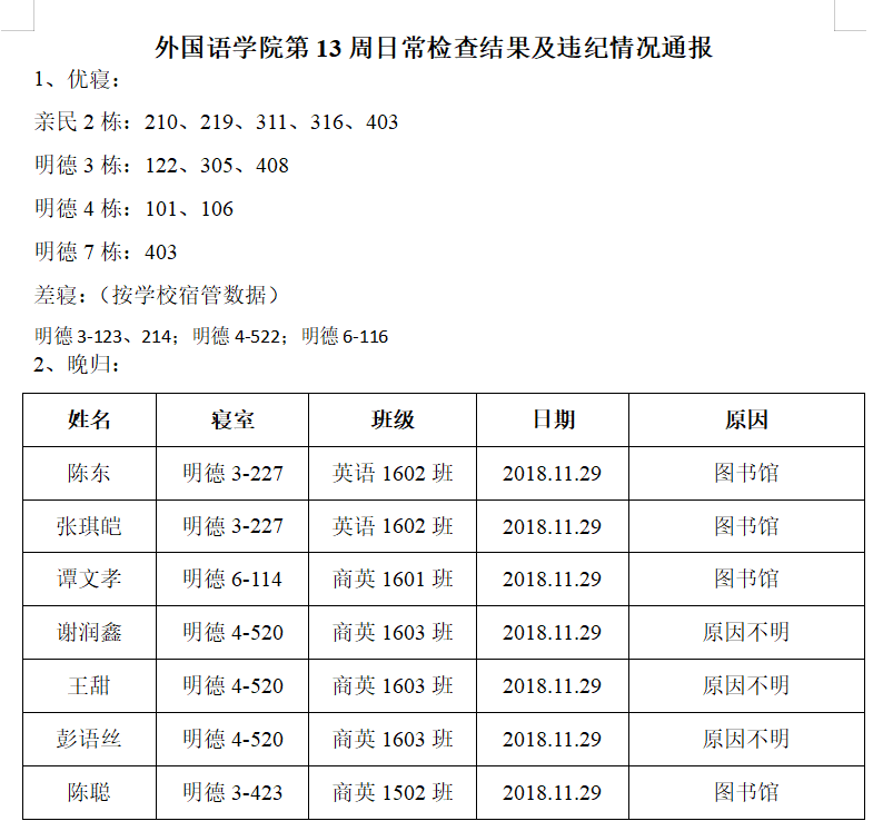 beats365官方网站第13周日常检查结果及违纪情况通报