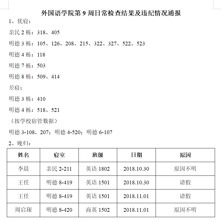 beats365官方网站第9周日常检查结果及违纪情况通报