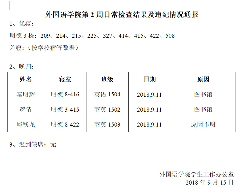beats365官方网站第2周日常检查结果及违纪情况通报