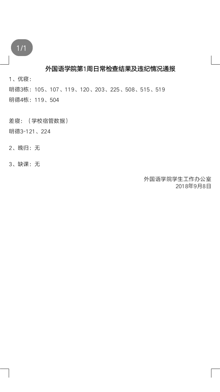 beats365官方网站第1周日常检查结果及违纪情况通报
