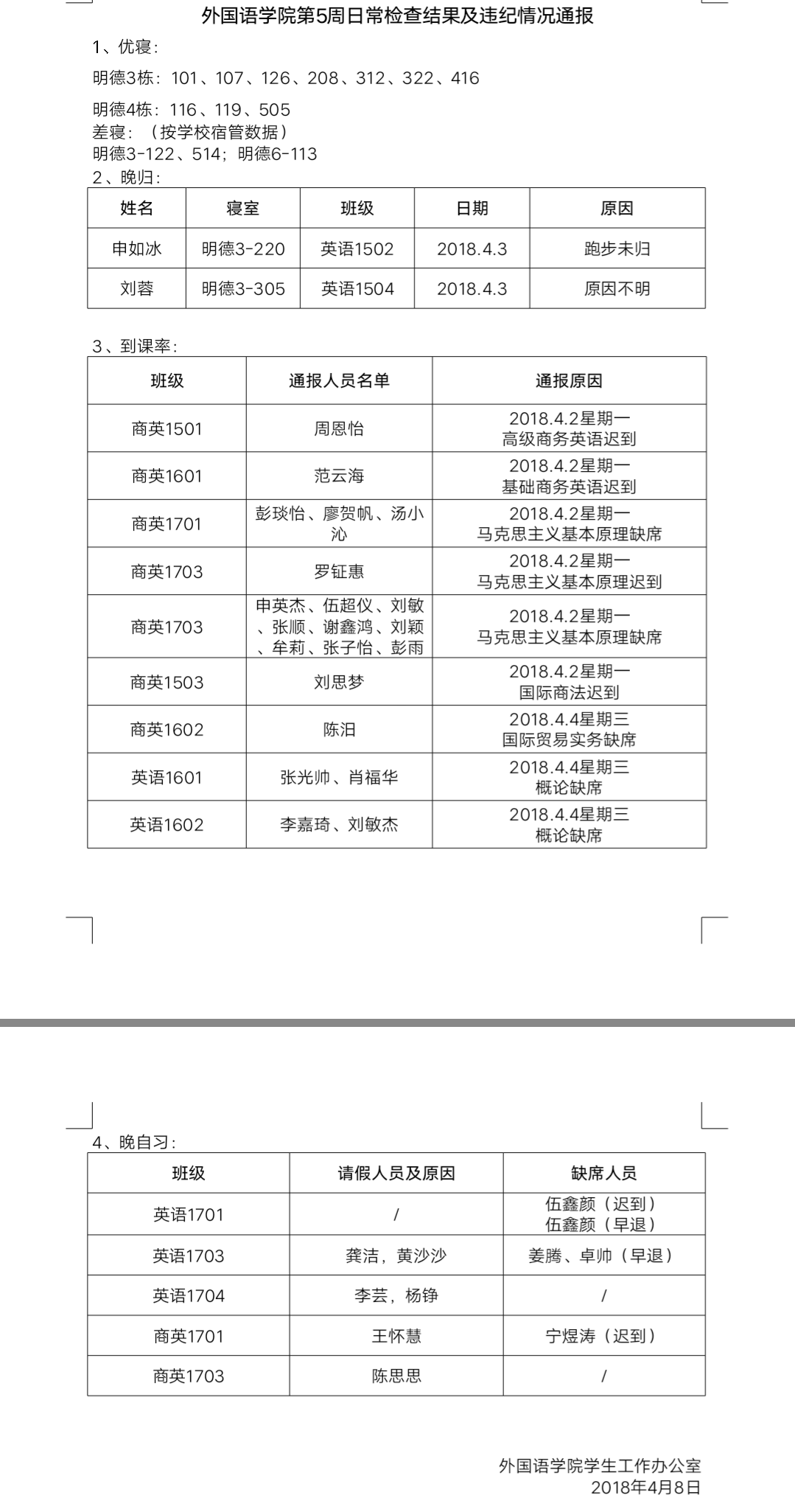beats365官方网站第5周日常检查结果及违纪情况通报