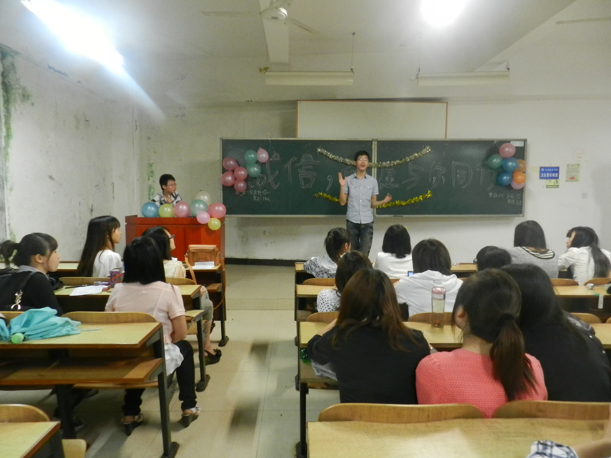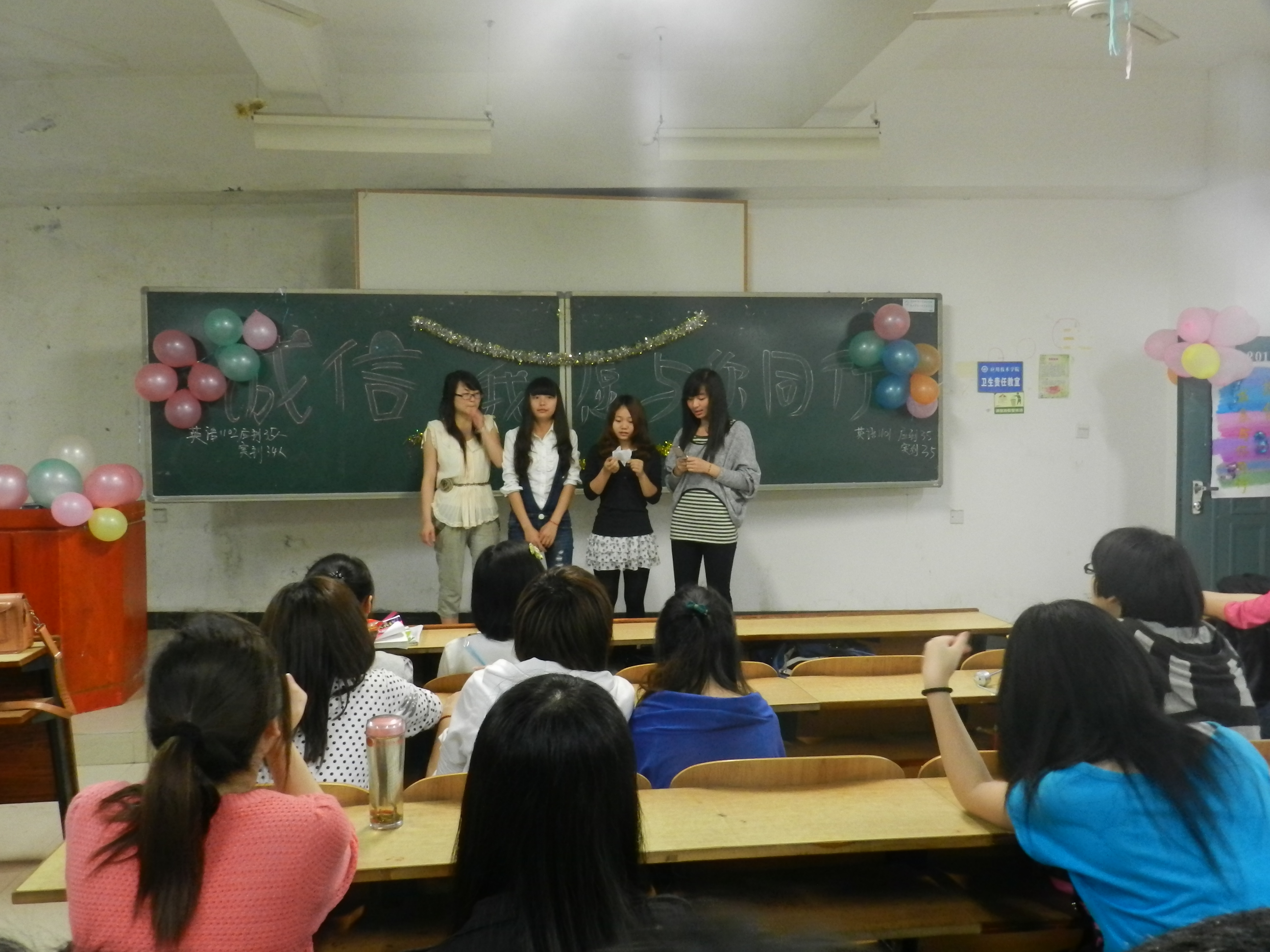 日晚上七点半,beats365官方网站大一、大二各班在教学楼召开了以“诚信,我愿与你同行”为主题的主题班会。
