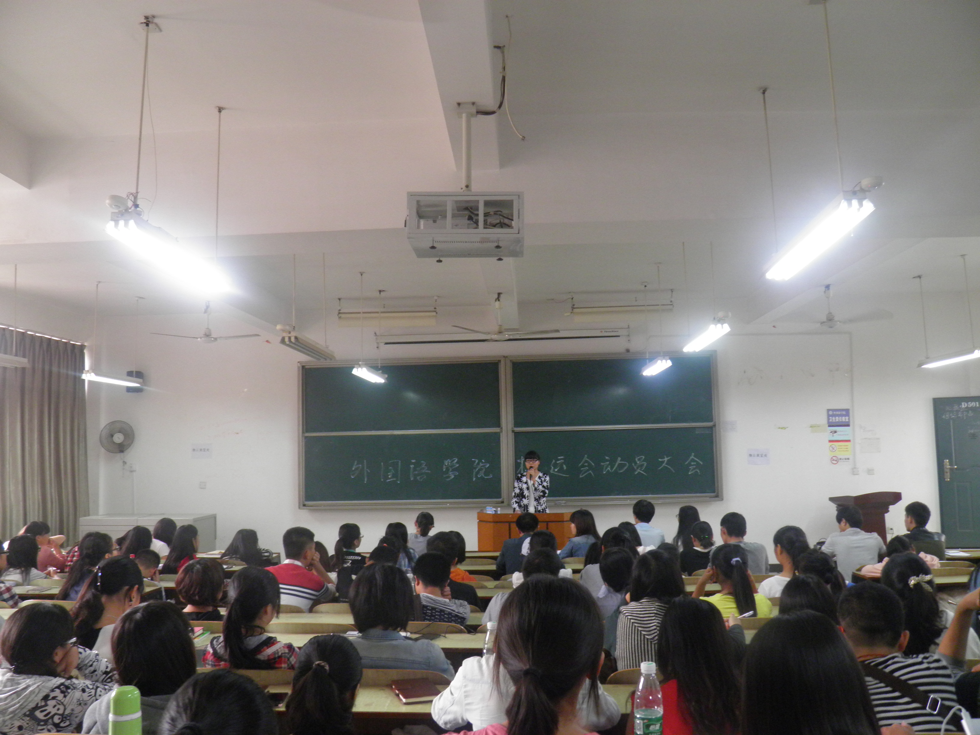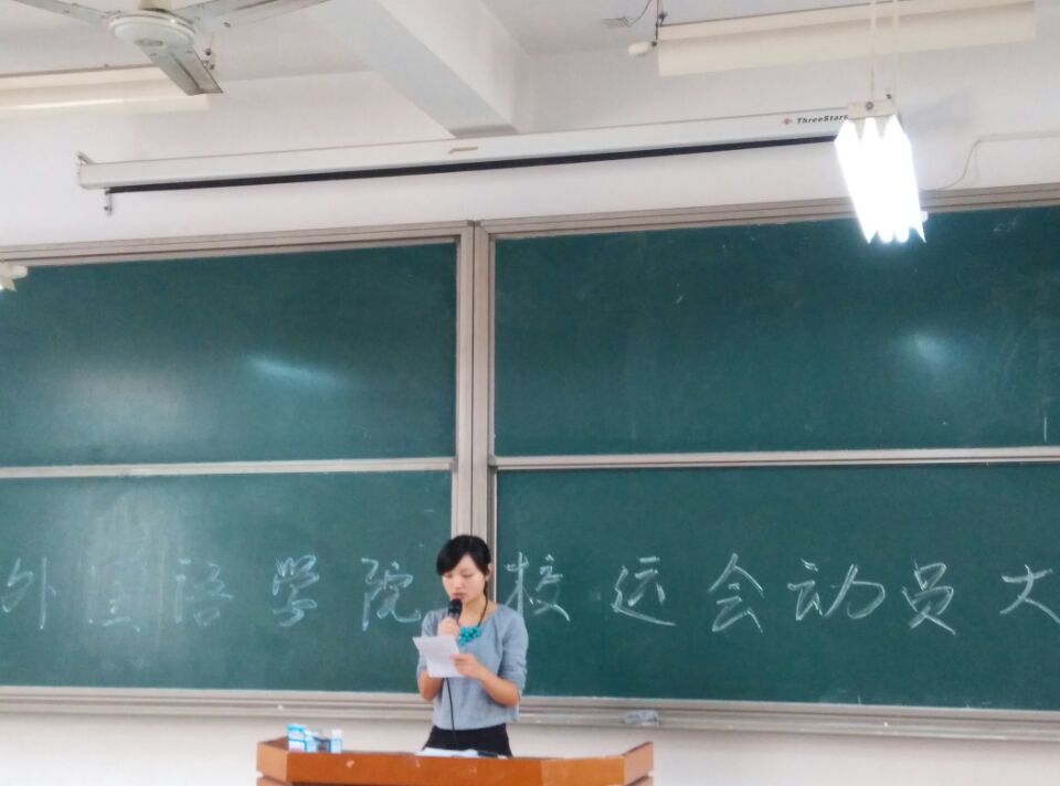 beats365官方网站2014年校运会动员大会于10月28日12点30分,在新校区主教学楼D501成功举行。此次大会由黎亚男同学主持,出席本次大会的有院团总支书记蒋莉老师,团学会全体成员和参赛的运动健儿们。