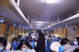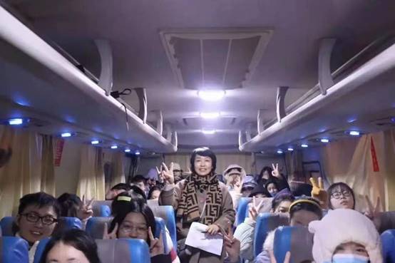 在大巴上,老师们仔细清点人数,一遍遍确认员工是否都已到齐.同时还提醒同学们注意所在考场和所乘车辆,避免因坐错接送车而耽误时间。同学们之间也相互鼓励,希望大家都可以勇攀人生又一高峰。车外寒风刺骨,车内暖意浓浓。26日清早片片飘扬的雪花,似乎也预示着来年的好兆头。瑞雪兆丰年,这将是丰“硕”的一年。