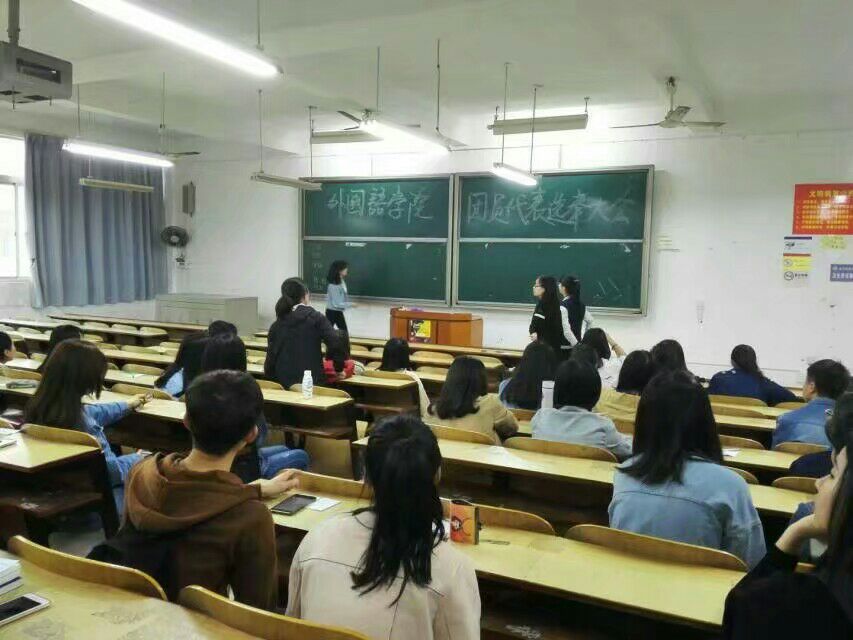 会议之初,张婷老师提出:广大团员青年要以高度的责任感和无私的奉献精神,勇挑重担、奋力拼搏,在共青团事业发展中施展才华。她认为,青年团员年富力强、思维敏捷、敢闯敢干。应该不断加强学习,充分发挥青年人特有的青春与活力,积极营造浓厚的学习探索风气、革新创造风气、求真务实风气,在创新实践中全面提升自身综合素质,最大限度发挥聪明才智,激发创业热情。在张婷老师的鼓舞下,在座的各位代表按耐不住自己的激动之情,纷纷上台发言竞选。现担任英语1604班班导来自英语1404班的谭辉以其良好的谈吐、优异的成绩赢得了现场观众的阵阵掌声。其中也不乏有大一新生踊跃参与,她们均表示尽管自己现在仍然缺少工作经验,但是她们愿意花时间来提高自己的水平,做到工作学习两不误,以此来回报在座各位所给予的信任。此次竞选共有来自大一大二大三的9名优秀班级团员代表参与,她们都是优秀的青年人才,然而,依照团规,其中有一人将不幸落选,但再接再厉不气馁也是一名优秀团员代表的美好品质。激烈的发言过后,在座的代表们执笔写下了自己认可的团员代表的名字。此次会议圆满结束。