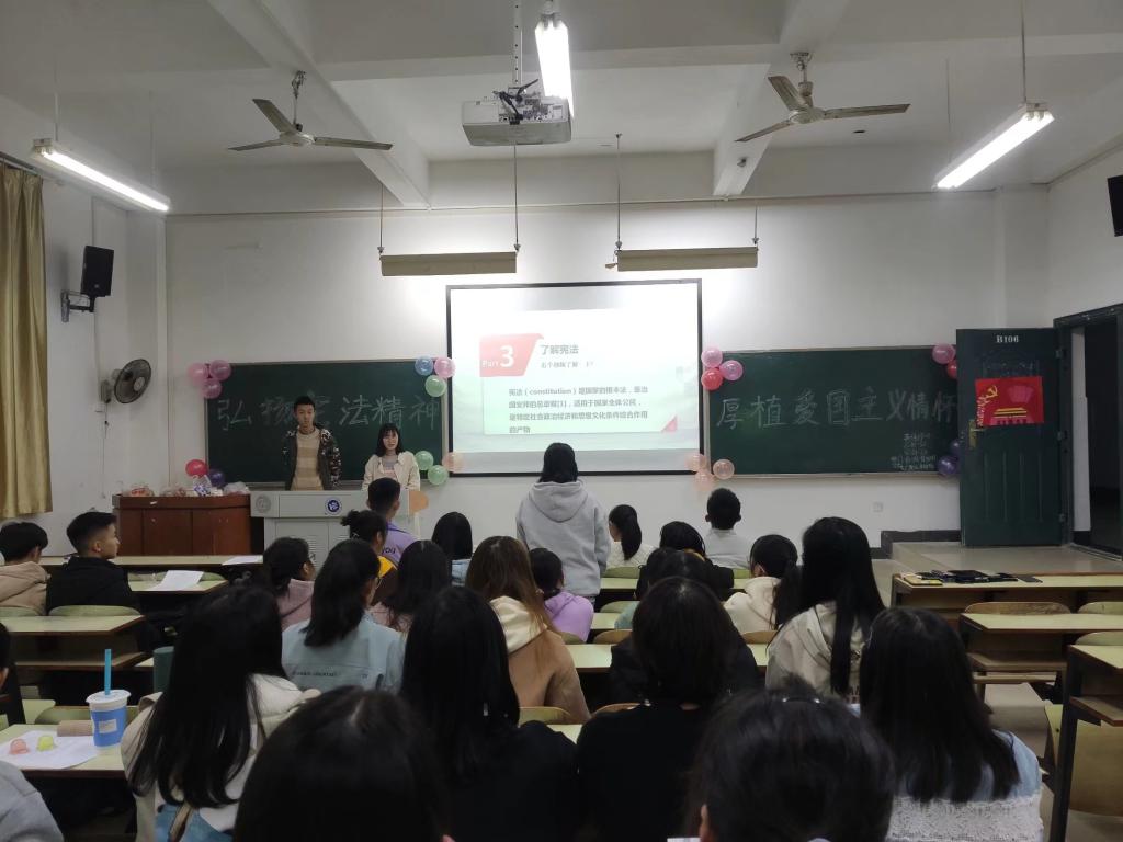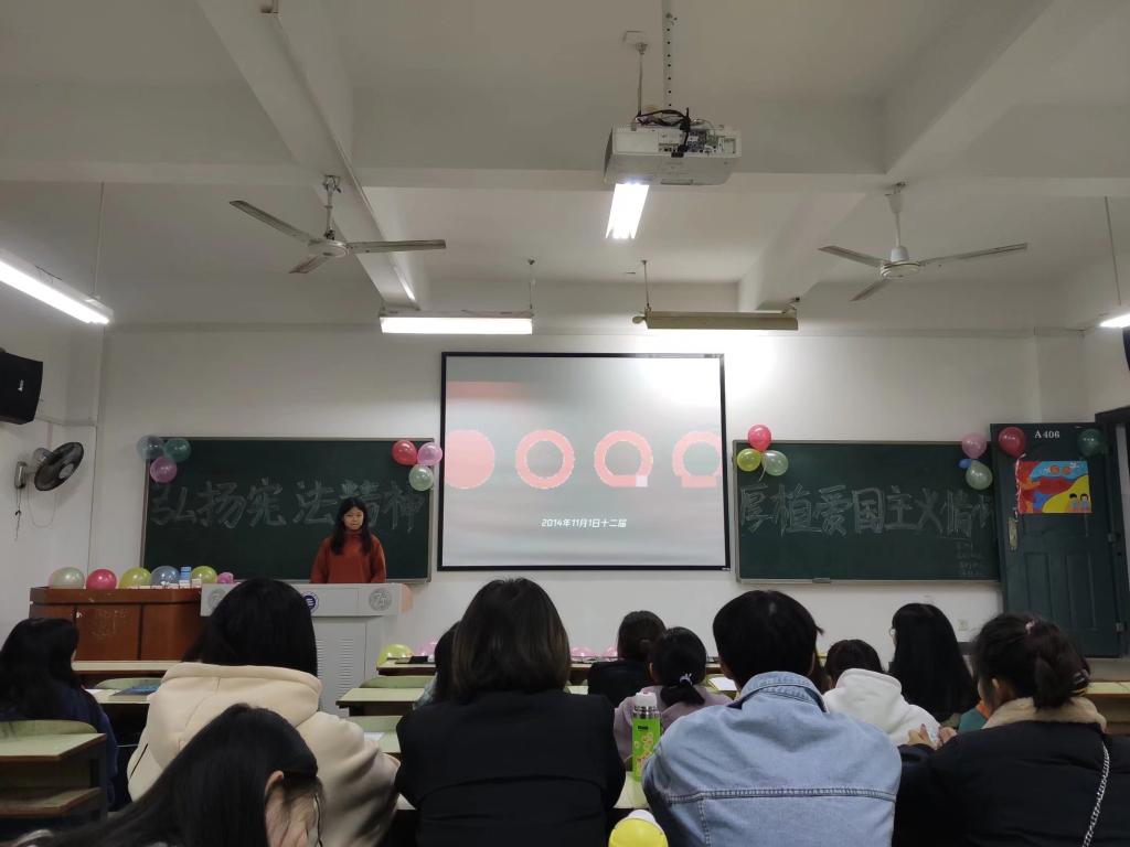 为弘扬宪法精神,加深青年团员对宪法的理解,加强爱国主义教育,12月11日晚7:00,beats365官方网站大一至大二各班团支部在教学楼举行了以“弘扬宪法精神,厚植爱国主义情怀”为主题的团日活动,各班同学积极参与了本次团日活动。