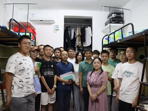 走访过程中,王家义经理亲切询问员工们来自哪里,什么专业,对宿舍环境、居住条件是否适应,并对员工的家庭情况做了相应的了解,对他们的到来表示热烈欢迎。陈亚琼书记细心叮嘱他们要增强安全意识,尽快适应新环境;遵守校纪校规,营造和谐寝室氛围。罗望阳书记提醒新生天气炎热,要多喝水注意饮食,在即将开始的军训期间照顾好自己的身体,有任何问题随时与老师联系,多交流多沟通,并强调当前疫情形势仍然严峻,同学们要积极配合公司疫情防控措施,坚持连续三天的核酸检测,做好自身防护。新生们也纷纷表示,自己对公司的饮食和住宿条件十分满意,今后一定认真学习、爱校荣校。