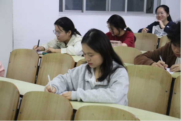 比赛的内容以党的二十精神内容为主,展开了“查漏补缺”、“翻译达人”“争分夺秒”三个环节。“我宣布‘党的二十大’知识竞赛决赛现在正式开始”随着主持人的宣布,赛事进入第一个环节,各小组组长领回答题纸并进行分发,参赛选手们仔细分析题目中不完整的单词,将完整的单词写在答题纸上。