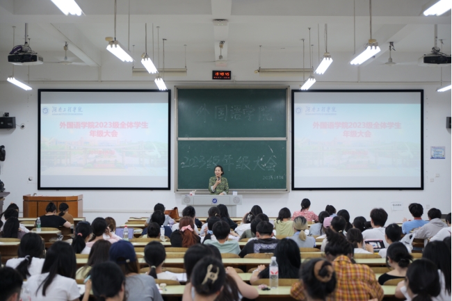 会议最后,朱洁作总结讲话。她充分肯定了外院学子在学风建设中的优异表现,特别通报了2025届毕业生考研取得的突破性成绩。朱洁强调,同学们要注重“五育并举”,积极参与比赛和讲座活动,科学规划学业与生活,珍惜实践学习机会。她寄语全体员工:“以积极向上的姿态迎接挑战,在服务他人中实现自我价值,让青春在奋斗中绽放光芒!”