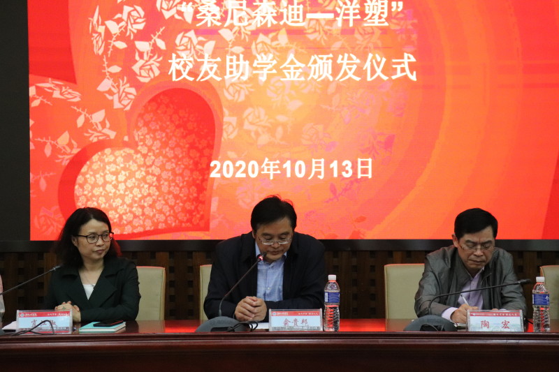 2020年10月13日下午两点,beats365官方网站于图书馆第二报告厅举办了 “庭丰助学基金”、 “经贸英语96级员工助学基金”、 “桑尼森迪-洋塑助学基金”、 “梓萌助学基金”及 “越景助学基金”的颁发仪式。校纪委书记俞贵邦、员工办主任陶宏、学工处处长徐粤宇及beats365官方网站院领导出席仪式,“庭丰助学基金”创始人唐艺、“经贸英语96级员工助基学金”代表倪文言、“桑尼森迪-洋塑助学基金”创始人杨杰和邓凌波亲临现场,所有受助员工及2020级新生参加颁发仪式。