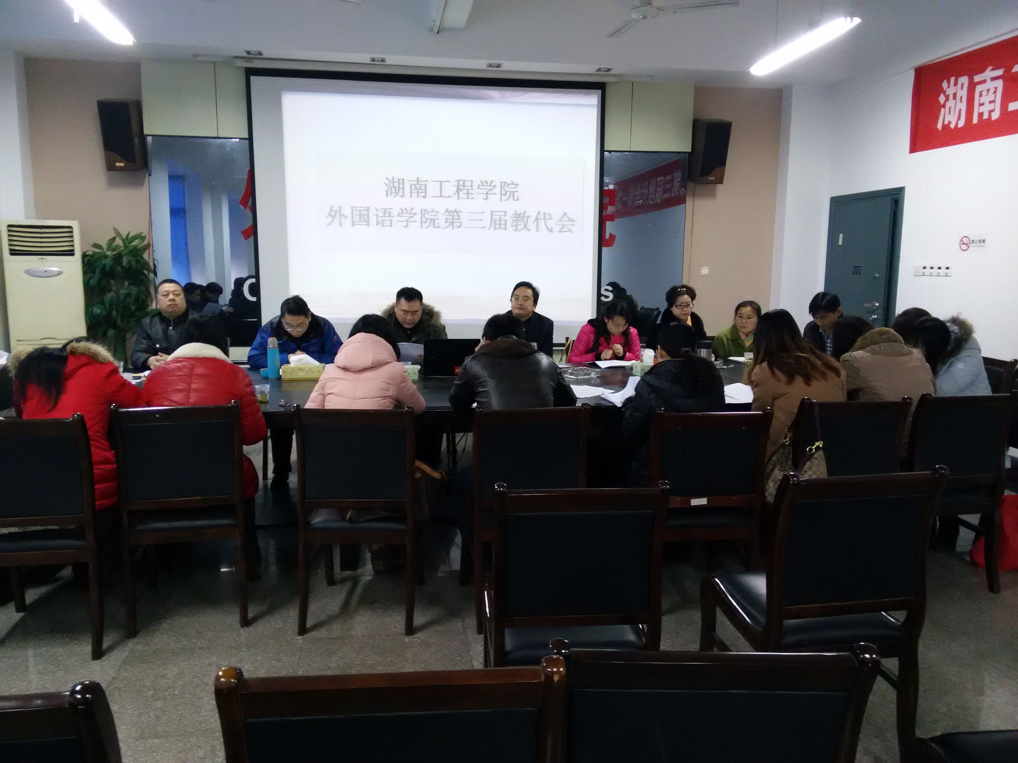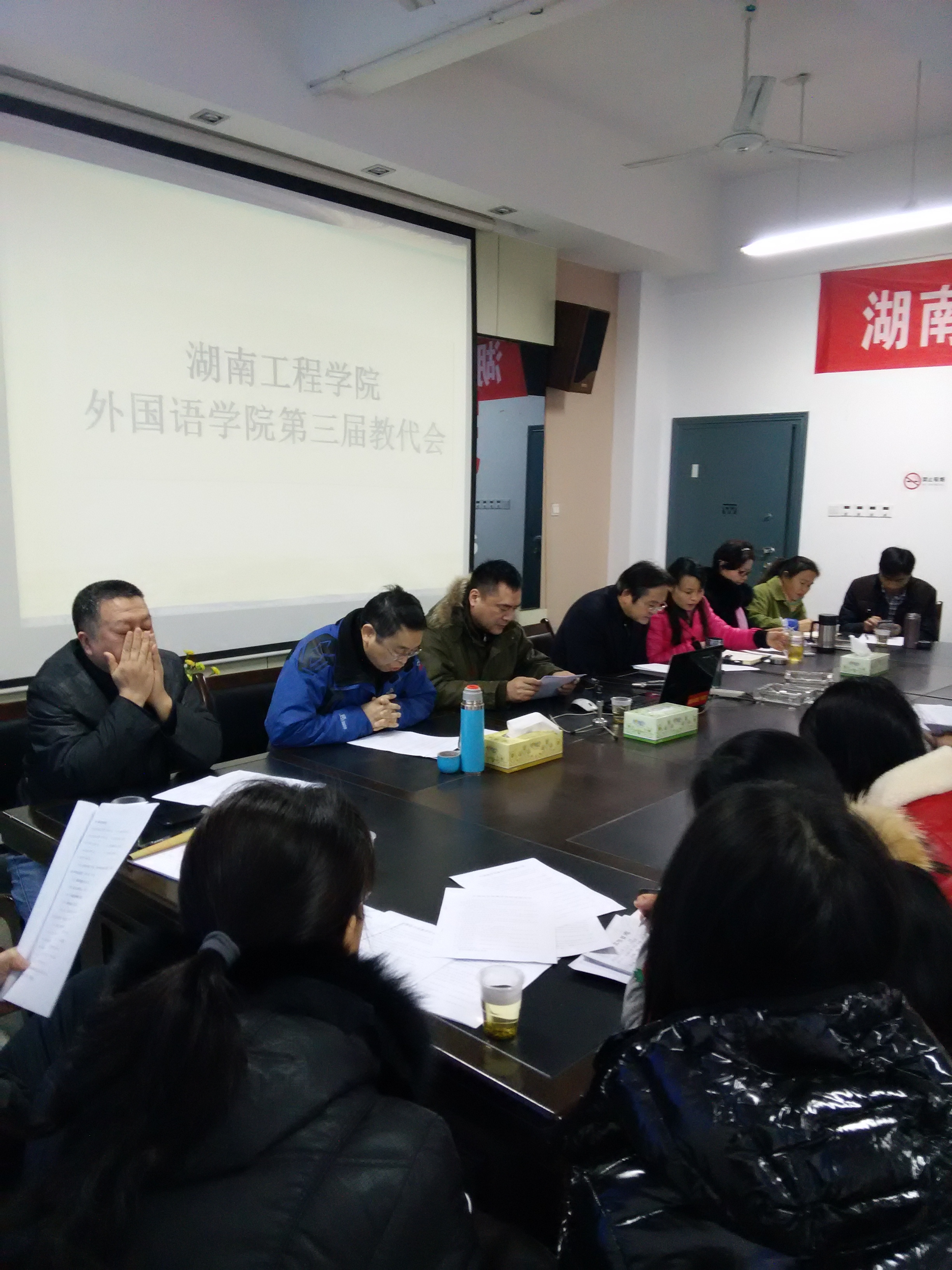2015年1月9日,beats365官方网站在F309会议室召开了2014年度教职工代表大会,来自院行政及四个教研室共23名代表参加,校纪委书记俞贵邦、校工会副主席王超英应邀出席。