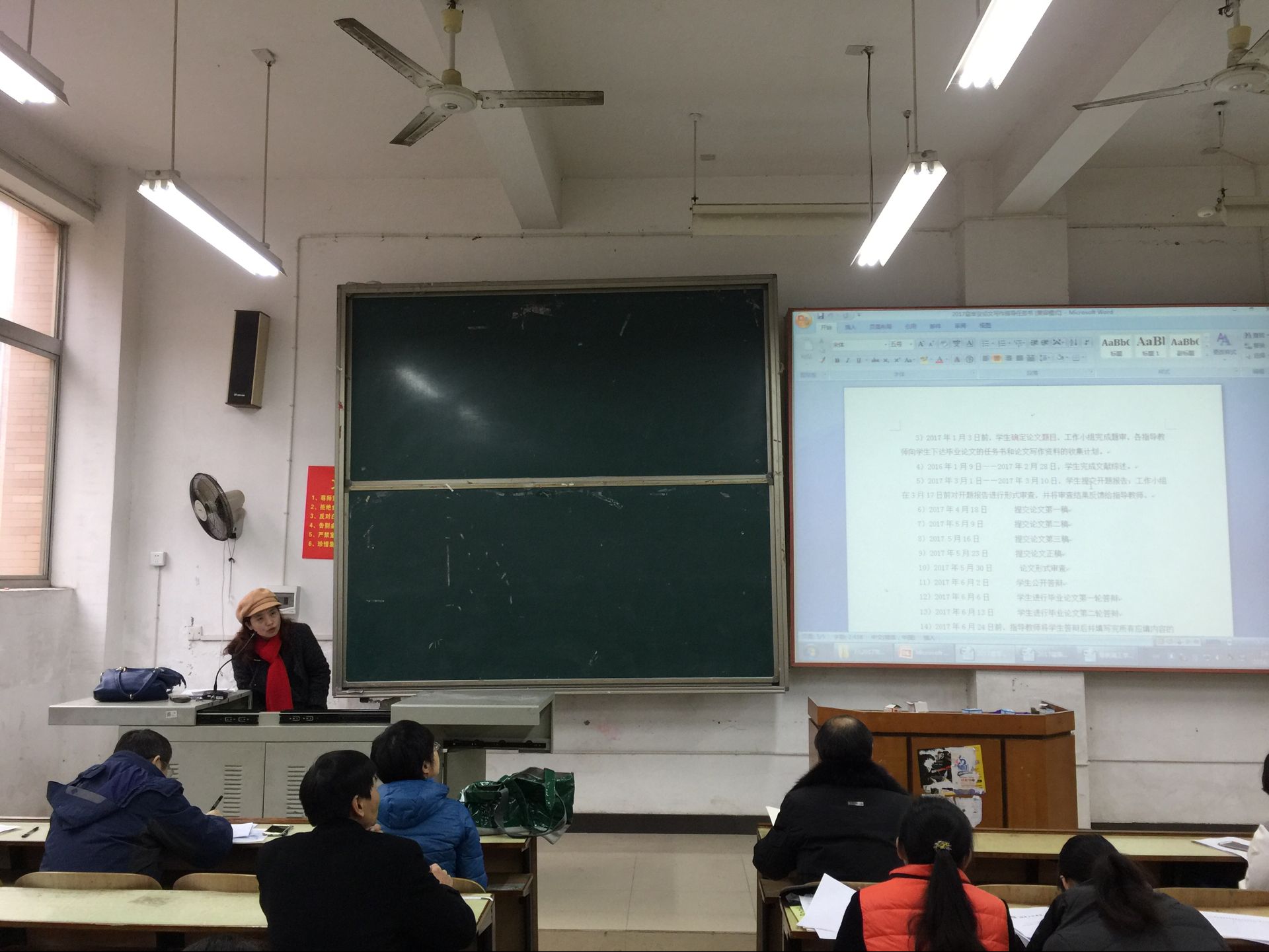 12月20日下午,beats365官方网站在D103和D301分别召开了英语专业和商务英语专业毕业论文与毕业实习动员大会,会议由两个专业的教研室主任朱洁和吴斐博士主持,院领导、毕业论文和毕业实习指导教师老师以及2013级全体员工参加。