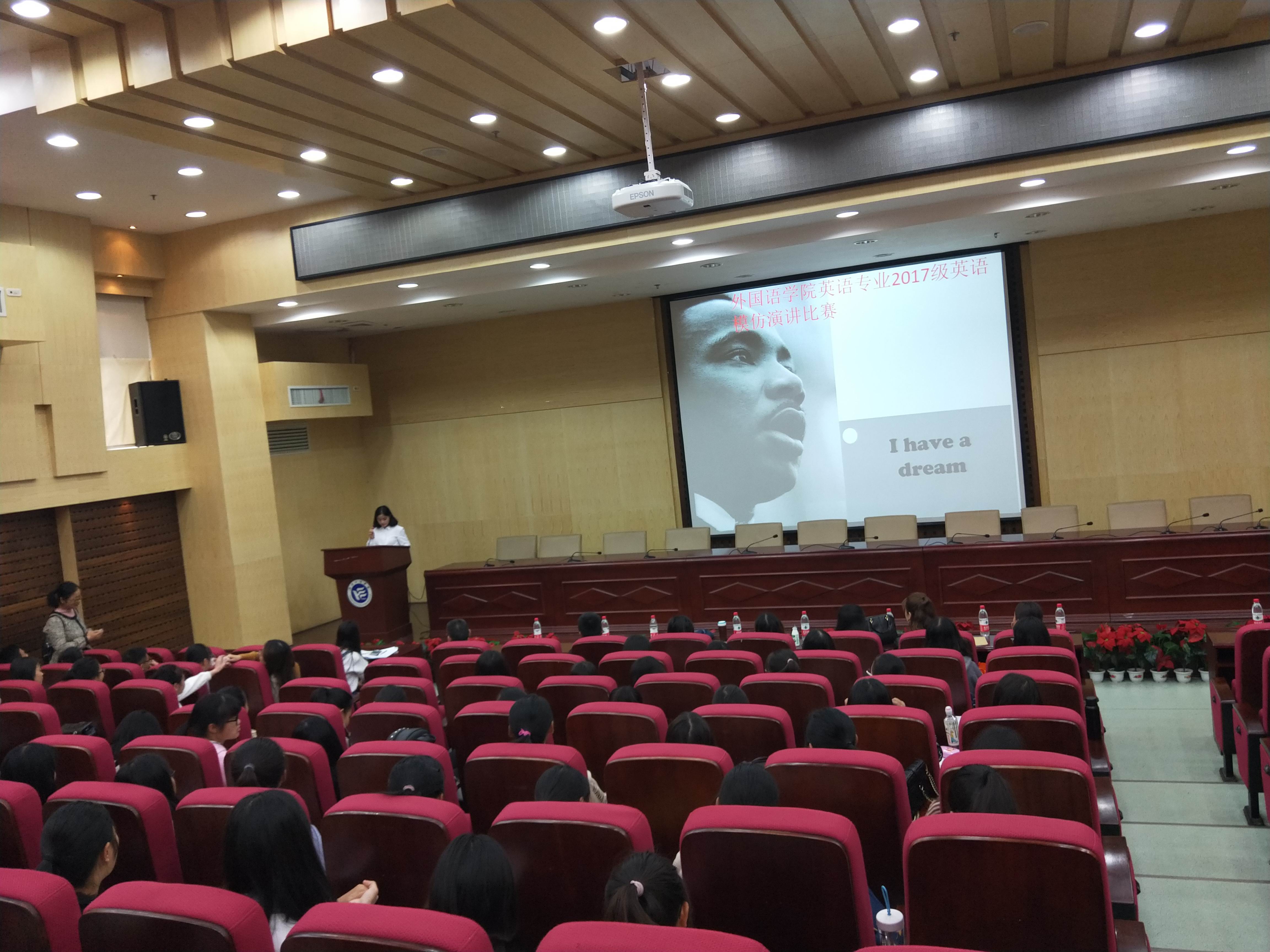 10月26日上午,beats365官方网站17级英语专业新生英语模仿演讲比赛决赛在图书馆二报告厅举行,经理杨永和、副经理罗胜杰、以及英语教研室部分教师担任评委,17级英语专业同学参与观摩。
