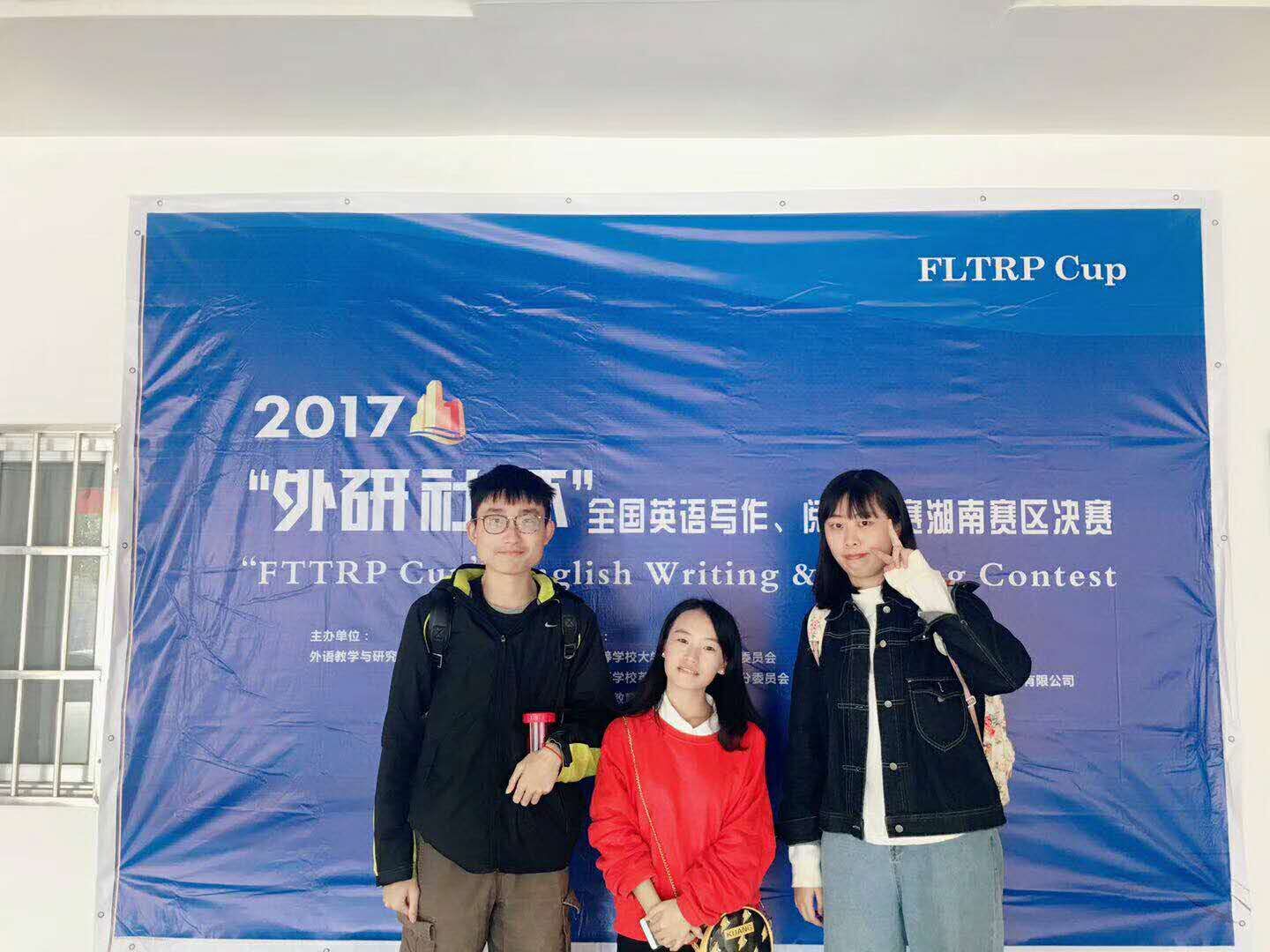 2017年10月28日,‘外研社杯”全国英语写作、阅读大赛湖南赛区决赛在中南林业科技大学隆重举行。通过任课老师推荐和写作、阅读比赛指导教师组认真选拔,公司派出了姜依玲、谢持恒、廖雅婷组成的写作组和谭丽萍、黄凯利、王丽组成的阅读组共6位同学参加比赛。最终,公司选手在与来自全身各高校的选派的近200位同学的激烈角逐中,不畏强手,稳定发挥取得了3个一等奖、2个二等奖和1个三等奖的优异成绩。
