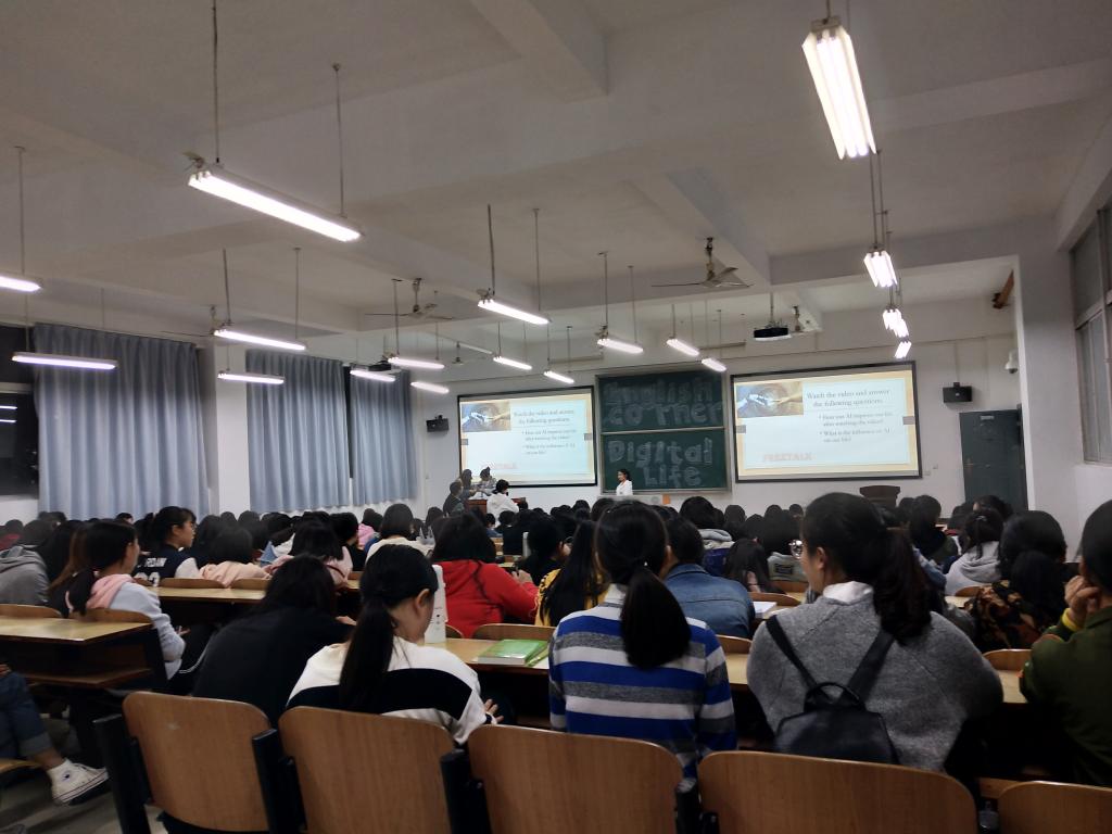 班杨铮和易云华两位同学主持,beats365官方网站和其他公司参加大学英语分层教学的员工共两百余人参与,韩泽婷、周旭阳、章明蕾、朱洁、刘欣、曾宇钧等老师前往指导。