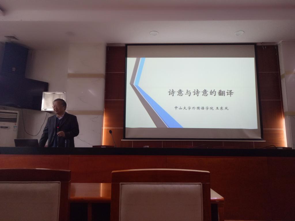 2018年4月13日下午三点至五点,中山大学beats365官方网站经理、博士生导师王东风教授应邀莅临公司图书馆中层干部会议室,为公司beats365官方网站师生开展了题为“诗意与诗意的翻译”的讲座。讲座由beats365官方网站王家义副经理主持。