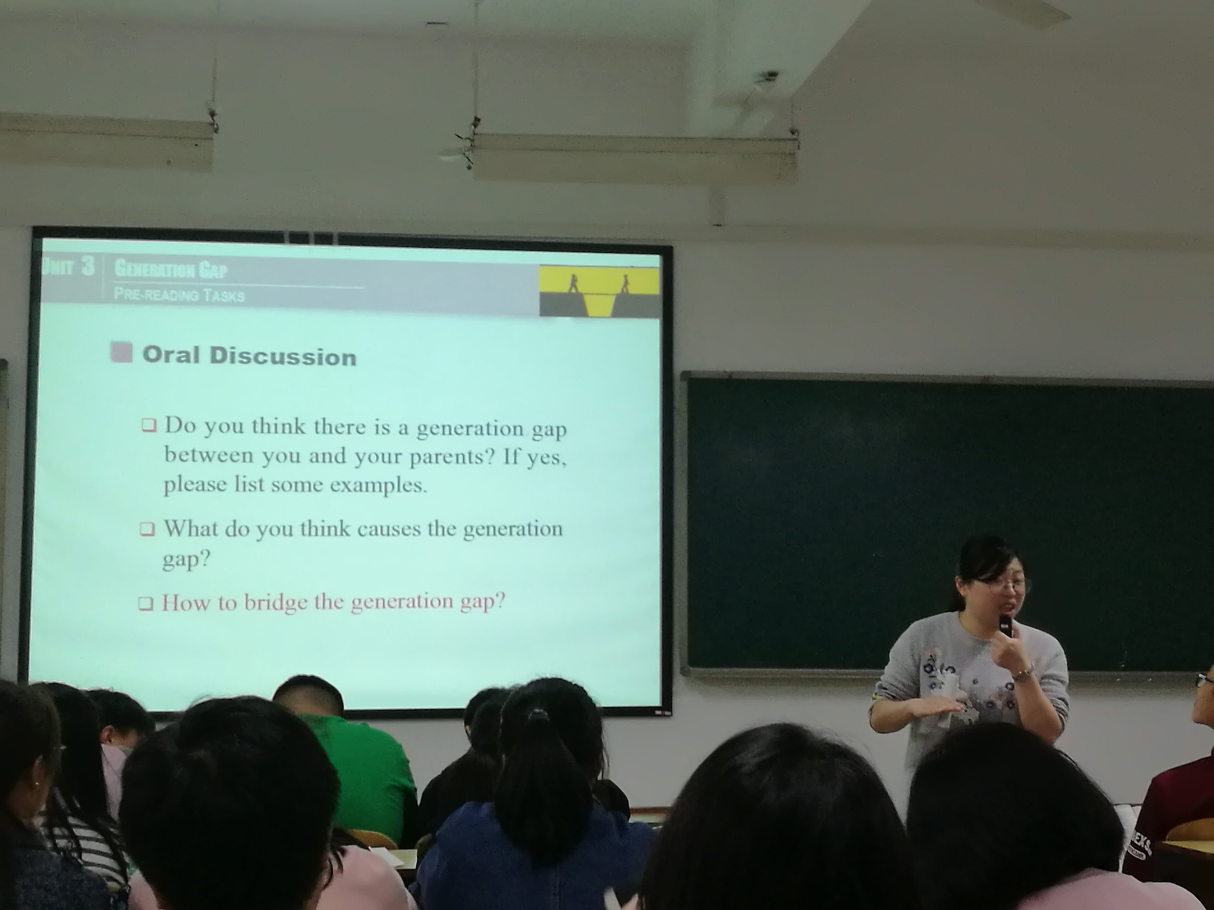 中,然后选取部分同学所做的关于代沟的调查,引导员工就代沟在生活中的各种表现形式、产生原因展开热烈的讨论,最后结合课文内容,总结如何缩小人与人之间代沟的方式;杨莉红以课文难度较大的