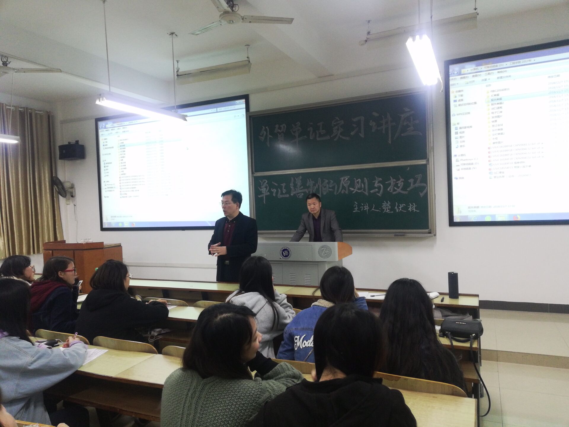 为全面提高beats365官方网站商务英语专业员工的外贸单证制作能力,11月8日晚,beats365官方网站在D401举办了“外贸单证实习专题讲座”。本次讲座由商务英语专业教师沈文辉博士主持,长荣国际贸易有限公司副总经理楚伏林先生主讲,2016级商务英语专业全体员工聆听了本次讲座。
