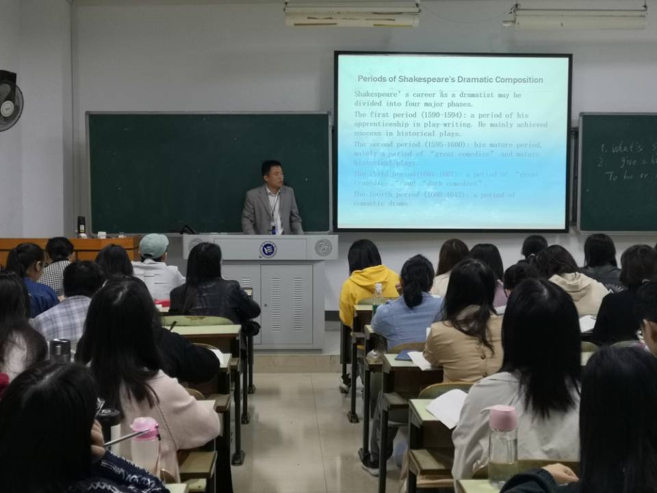 吴老师所讲授的内容是英美文学史的“莎士比亚”专题,授课班级为商务英语1601和1602班。课前他认真钻研教材,准备了丰富的教学内容,精心设计的教学活动使课堂开展得有条不紊。课首的回顾环节既帮助员工巩固了以前所学内容,又有利于集中员工注意力,使其投入到新的课堂学习;课堂上员工的presentation 环节既锻炼了员工自主学习能力,又调动了员工参与课堂学习的积极性,从而营造了浓厚的课堂学习氛围。
