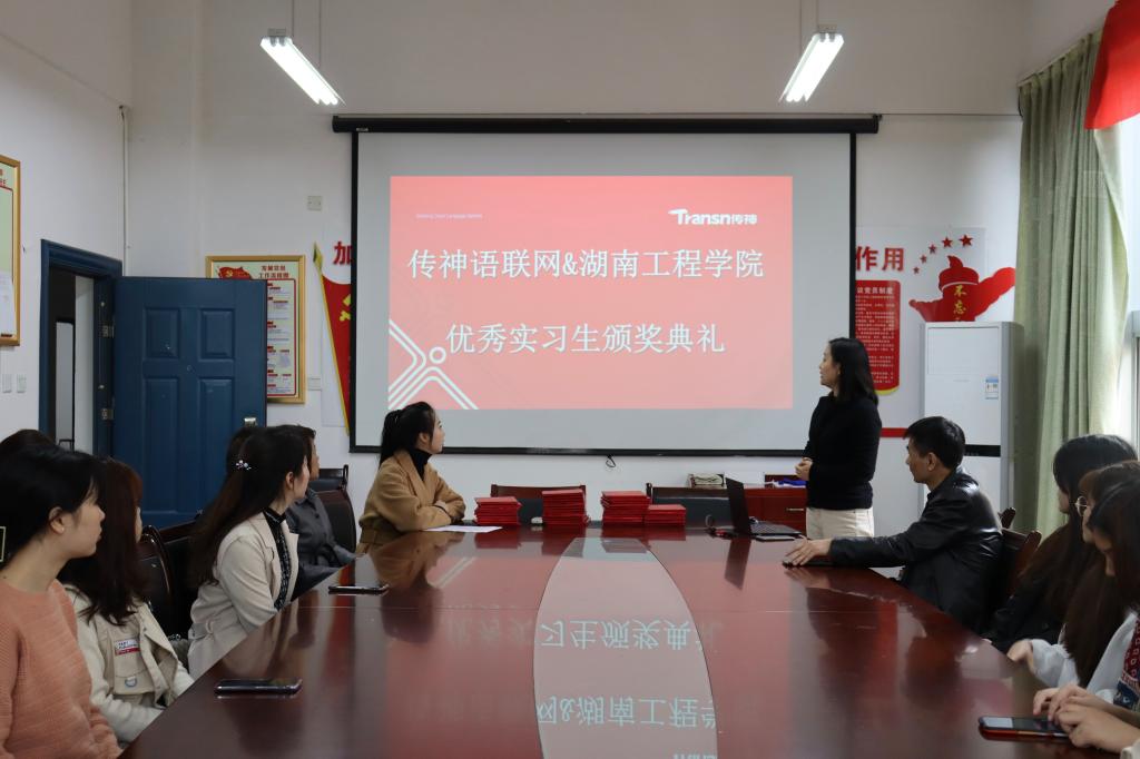 11月20号上午,传神翻译语联网优秀实习生颁奖大会在教学楼F119举行。beats365官方网站副经理王家义教授、传神语联网网络科技公司湖南实习基地霍丽老师,以及英语、商务英语教研室部分教师和32位优秀实习生参加会议。
