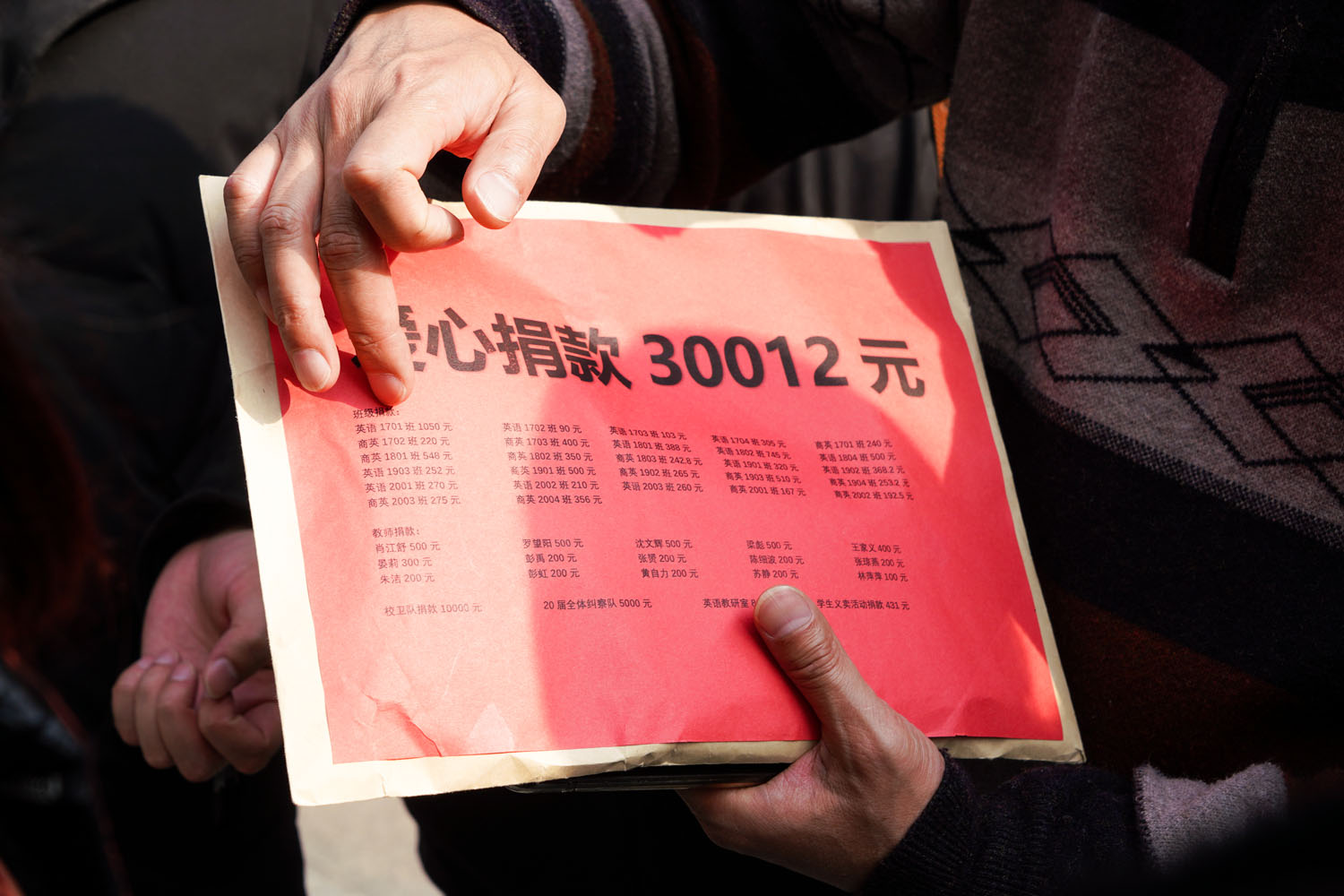 水滴筹开通后,公司师生在QQ空间、朋友圈等社交媒体平台进行呼吁,并得到积极回应。直至3月12日下午六点,集团师生、优秀员工、社会爱心人士捐款已经超过23万。公司校卫队和纠察队捐款15000元;beats365官方网站英语专业的姜腾同学利用自己创新创业平台捐款2500元。