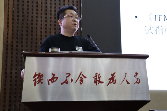 周敏老师首先给2019级全体员工进行动员。通过分析近几年专四题型的变化及调整,他指出专四考试总体来说较前几年难度降低。他强调同学们一定要坚定信心,经过接下来两个月的备考,相信自己一定能够一次通过。随后,周敏老师从专四考试大纲、考试六大题型进行整体概括讲解,按题型卷面顺序进行分模块解析,从题型要求、选材类型层面对题型内容进行详细阐释;从测试目的、测试原则、批改标准等方面对同学们提出具体要求。周敏老师特别指出,从语言知识层面来讲,同学们需要具备分辨地方英语语音语调的能力,对英语基本写作习惯有一定了解,要充分掌握专四范围内的词汇和语法结构;从非语言能力方面来讲,同学们应该熟知英美国家文化背景知识,注重锻炼记忆能力,规范书写习惯,做到卷面干净整洁、条理清晰等。除此之外,周敏老师给同学们介绍了实用备考词汇书,提供了考试材料的主要来源和渠道。他希望同学们能充分利用备考时间,掌握专四词汇、短语和相关运用,坚持做好每天的精听、泛听练习。并且在备考过程中,同学们不仅需要总结真题卷和模拟卷中的错误经验,也需要积累正确题目的经验。周敏老师认为这样长此以往的训练和积累会让同学们在专四考试中十拿九稳。