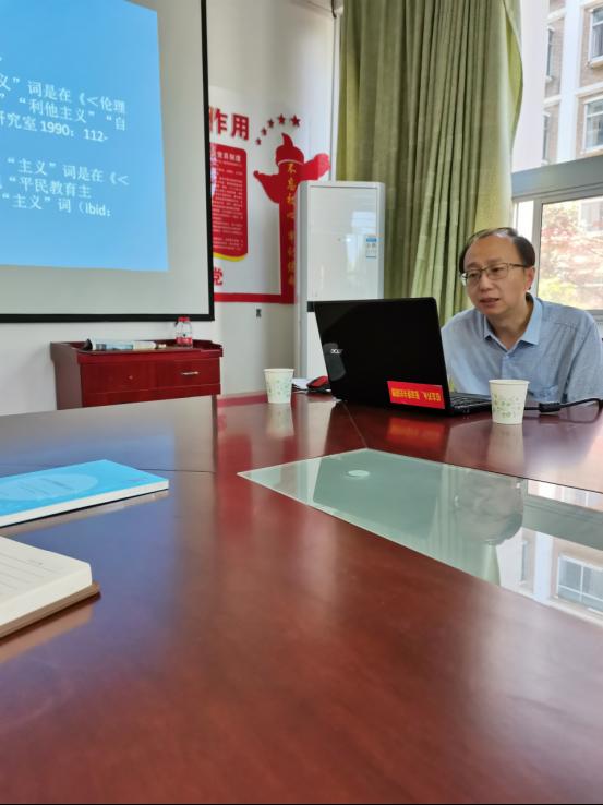 黄立波教授是西安外国语大学的“领军学者”,主要研究领域包括:翻译学、语料库语言学、翻译文化史等。此次演讲题目是“毛泽东著作‘主义’词的翻译中外对比——基于语料库的考察”,黄教授分享了多年来所从事的对毛泽东著作翻译的历程和成果。