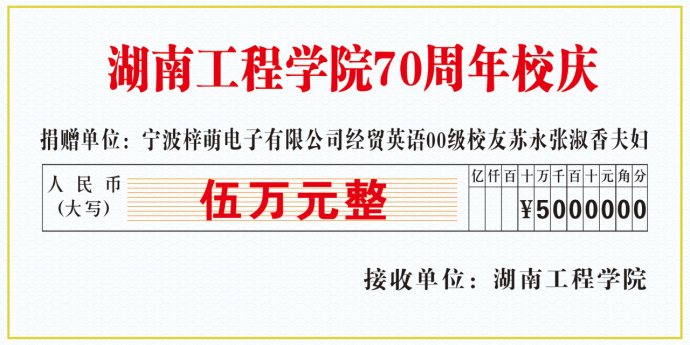 七十年薪火相传,七十载峥嵘岁月。优秀员工苏永、张淑香夫妇希望同学们铭记“锲而不舍 敢为人先”的校训;铭记“以生为本 止于至善”的院训。用青春去热爱所学,用热血去落实所用,回馈母校,回报社会,将温暖相传。