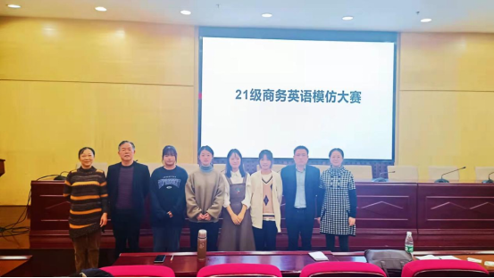 此次比赛由商英2104班李丹和胡晓兰主持,并邀请外国语副经理吴斐、教授沈文辉、副教授刘一鸣、沈勤担任大赛评委。比赛规则是前期每班选拔出五人参加决赛,四个班共二十名优秀选手参与,由评委打分角逐出一二三等奖。