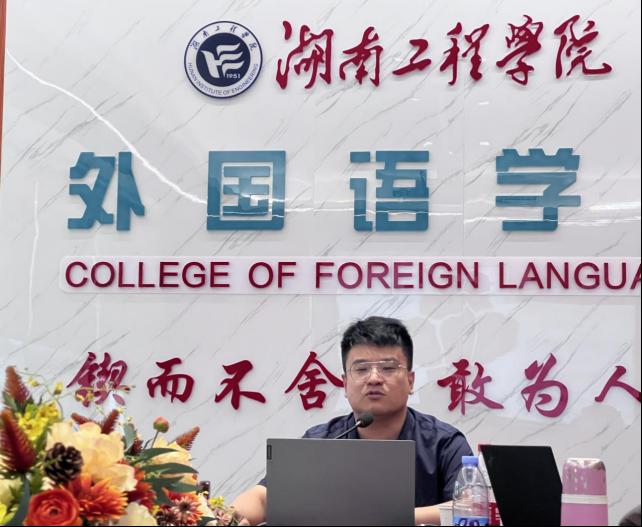 王峰教授作第二场讲座发言,他以个人学术发表经验为例,展示如何从SSCI学术期刊学习翻译研究的量化方法并应用到自己的翻译研究设计,随后以文员工态批评为框架,以《狼图腾》中的民族与生态内涵为重心,分析作品在经历葛浩文“连删带改”的翻译策略后损失了哪些生态意义。王教授就选题的灵感、如何进行研究设计以及相关分析进行了阐释,并指出:模仿研究的价值和作用,对于初次接触学术研究的年轻老师有着重要的指导意义。姜峰教授与王峰教授的分享深入浅出,风趣幽默,富有亲和力和启发性,使在座的听众受益匪浅。