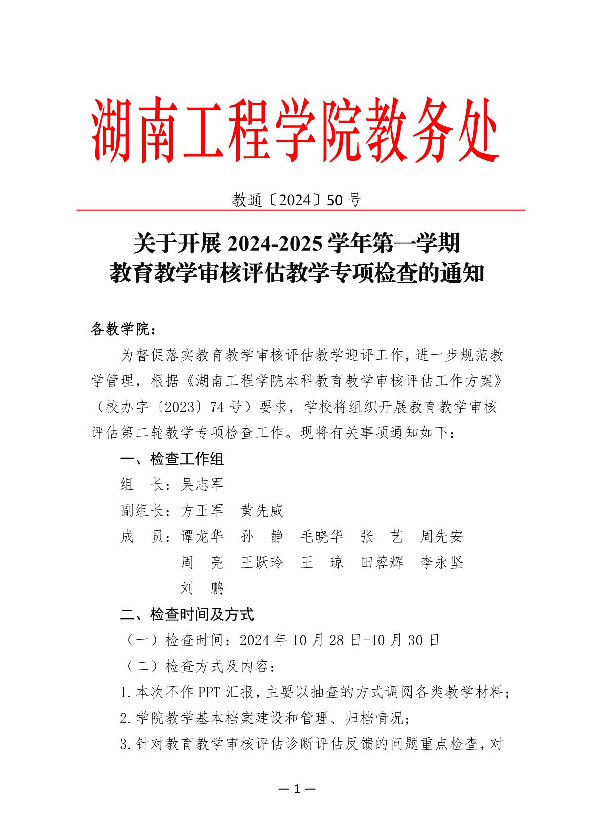 【审核评估】关于开展2024-2025学年第一学期审核评估教学专项检查的通知