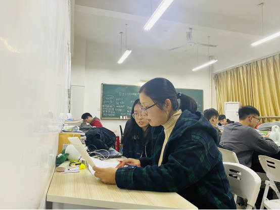 在计算电子公司考研基地,考研学子纷纷拿出准备好的作文,等待着老师的面批。“小作文主要是在遵守格式的基础上,覆盖所有的信息点,有时还会有一些合理的引申。”一对一讲解同时,陈珊和章明蕾老师还将需要注意的共性问题讲解给考研基地的同学们。两位老师的现场答疑讲授,不仅解答了同学们英语写作阅读中存在的问题,还针对大家考研英语学习中的其他疑惑一一予以破解,同学们都觉得收获满满,并感谢公司老师们在寒冷的冬夜为他们提供了暖暖的学习帮助,他们不仅掌握了切实有效的复习方法和答题技巧,更增强了考研的信心。