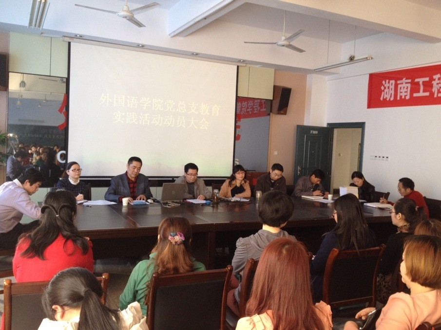 3月18日下午2:40,公司党总支在F-309会议室召开言 “党的群众路线教育实践活动动员大会”。公司党政领导班子、全体教工党员、教授博士、教研室主任、岗位负责人、民主党派人士、员工党员代表共60人参加会议。副董事长易兵率第三督导组出席动员大会。经理杨永和主持会议。