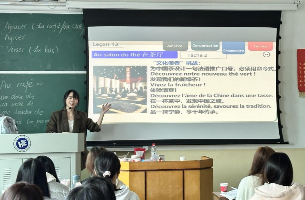 本次公开课主题为《Au café》(在咖啡馆),以真实的咖啡馆对话为切入点,围绕“命令式”语法点展开教学,融合语言学习与文化比较,呈现了一堂生动而富有深度的外语课。课程通过图片、视频等多媒体素材,员工直观感受法国咖啡馆的社交氛围,教师适时引入中国茶文化,搭建跨文化理解的桥梁。在文本解读与语法讲解环节,员工通过角色扮演、命令式操练等活动,掌握了点餐、推荐与拒绝等实际交际技能。在小组任务环节,员工分组设计中国茶的法语推广口号,活用命令式,在语言实践中传递中华文化魅力。课程在轻松愉快的氛围中结束,不仅提升了员工的法语应用能力,更增强了其文化自信与跨文化沟通的使命感。