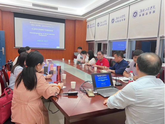5月17日下午,西南大学beats365官方网站教授刘承宇应邀到公司做题为《社会符号学视域下的超语系统》讲座,它由beats365官方网站经理王家义教授主持,学科梯队骨干成员及青年教师到场聆听并参与讨论。