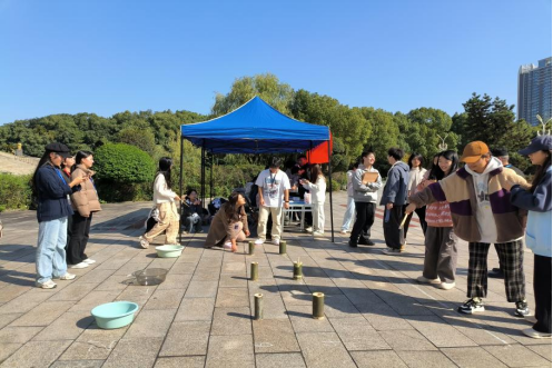 心意“竞”相“投”,文化赋能行。心理部工作人员为同学们讲解投壶起源、投壶礼仪与技巧及游戏规则与奖励机制。活动现场,同学们热情高涨,摩拳擦掌,跃跃欲试,积极加入到投壶体验的长龙之中。选手们在投壶时,全神贯注,目光坚定,紧握箭矢,瞄准壶口,以腕上的巧劲轻轻一掷,箭入壶口,未投中的同学也不气馁,大家相互鼓励、分享着投壶经验和技巧。“哇”“厉害”“又进了”人群欢呼声、掌声 、嬉戏声此起彼伏,同学们沉浸其中,尽情地释放压力、放松身心。